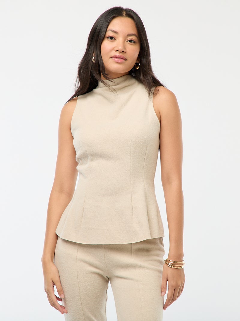 Top entallado de punto suave - Beige
