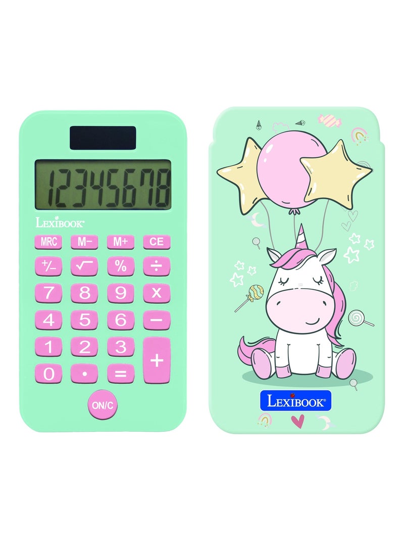 Unicornio Calculadora de bolsillo de 8 dígitos con funda protectora - Azul