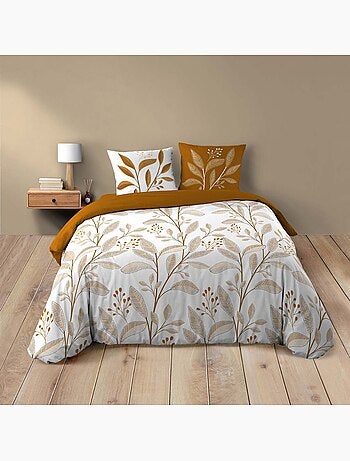 Juego de sábanas de algodón de 3 piezas con funda con motivo de follaje + fundas de almohada