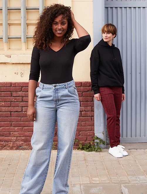 Este vaquero estilo vintage de talle alto con corte oversize marca la cintura combinado con una camiseta metida por dentro o un modelo cropped.