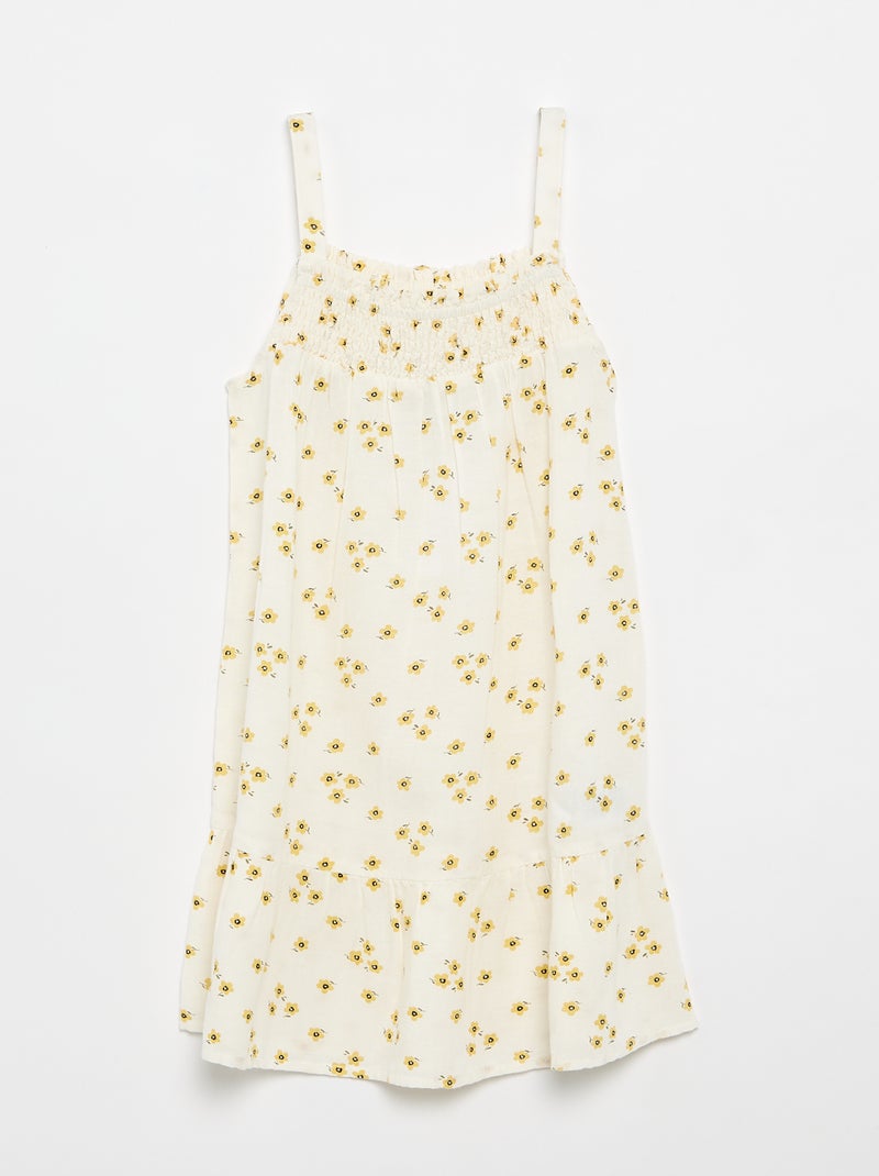 Vestido con estampado integral y tirantes finos - Beige