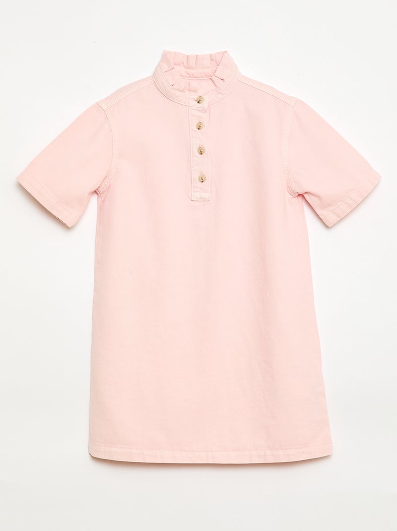 Vestido cuello mao en vaquero - Rosa