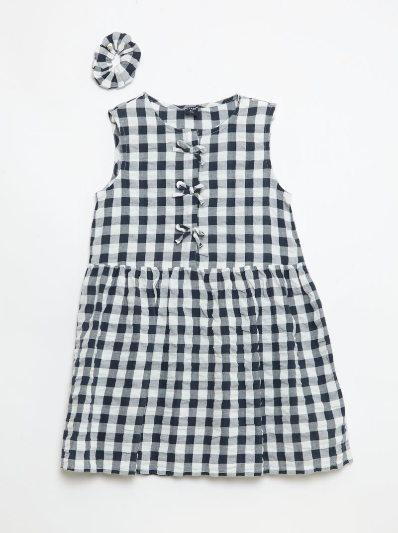 Vestido de cuadros vichy de manga corta con lazo + coletero - Azul