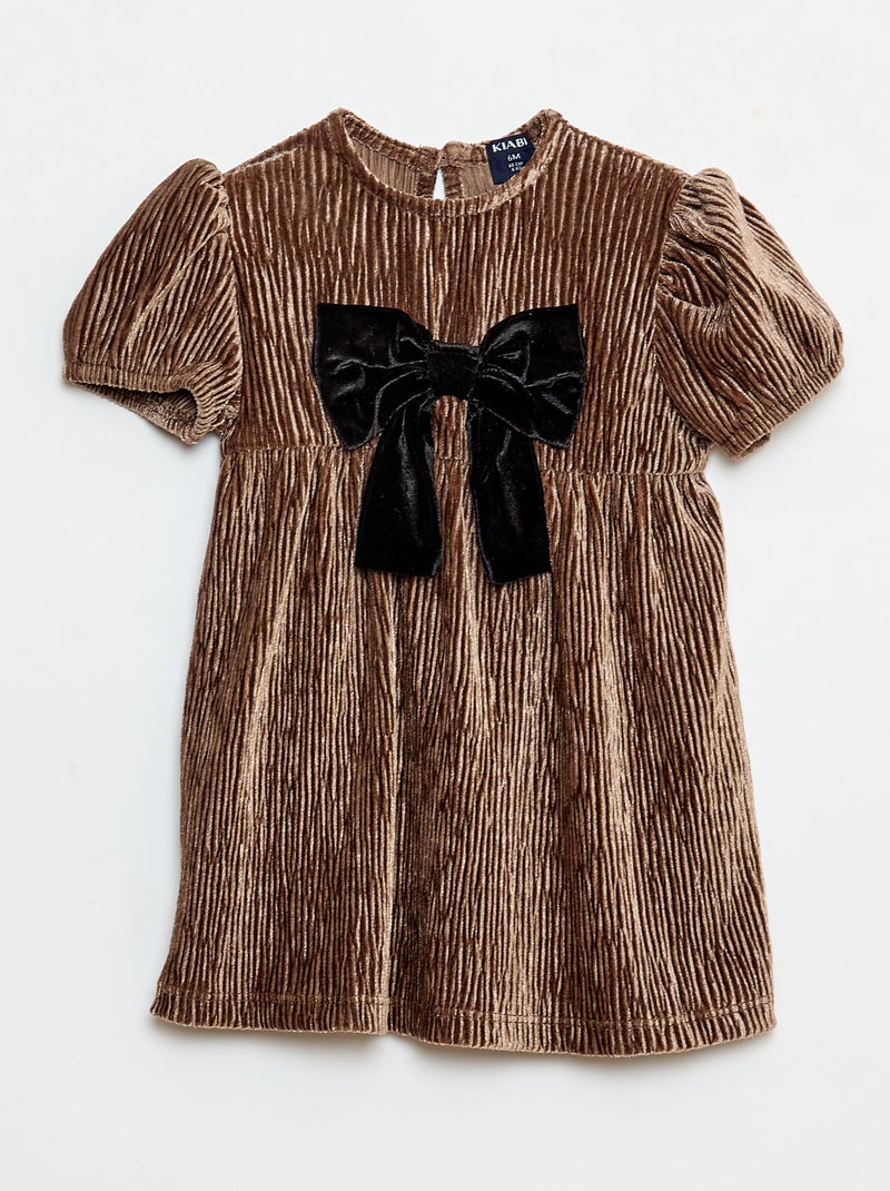 Vestido de pana con lazo decorativo - Beige