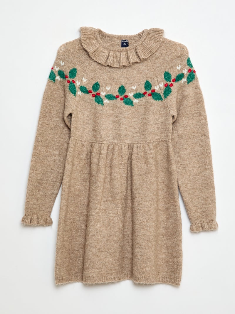 Vestido de punto suave 'Navidad' con cuello bebé - Beige