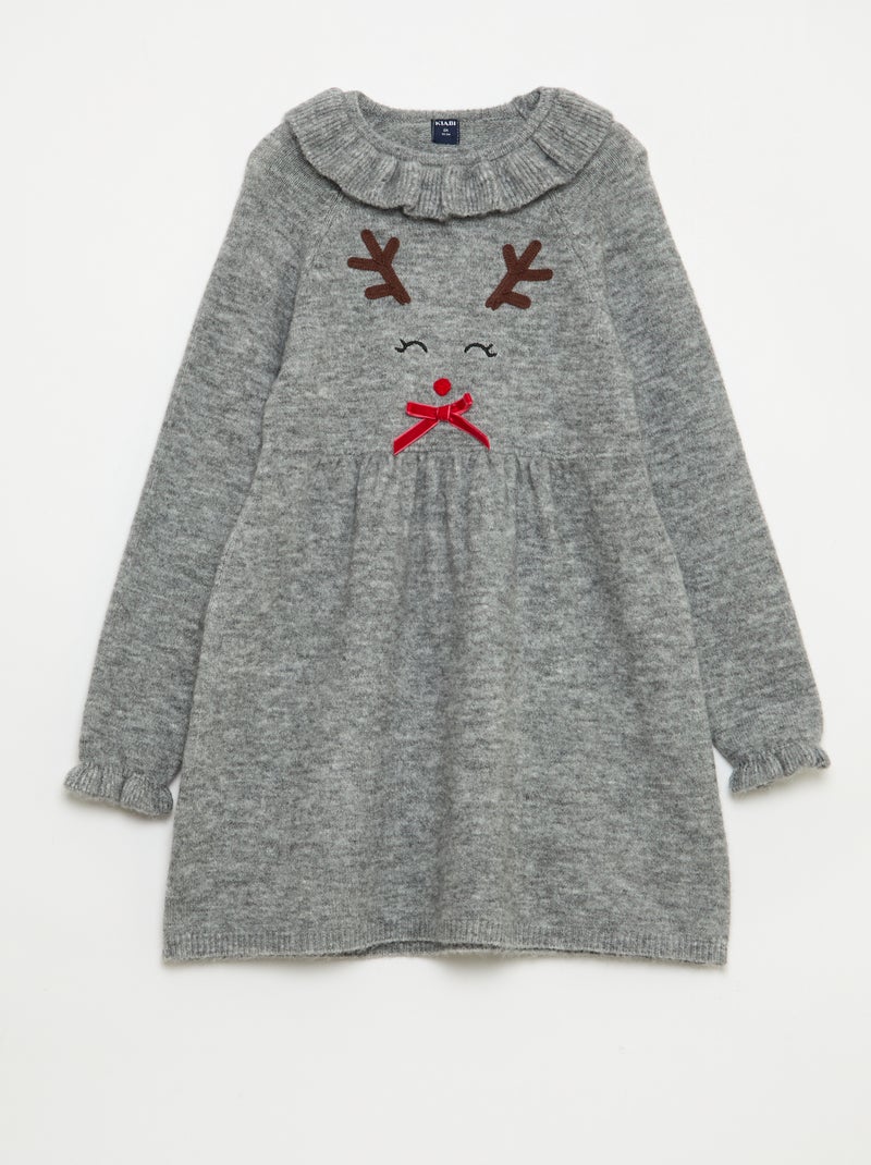 Vestido de punto suave 'Navidad' con cuello con volantes - Gris