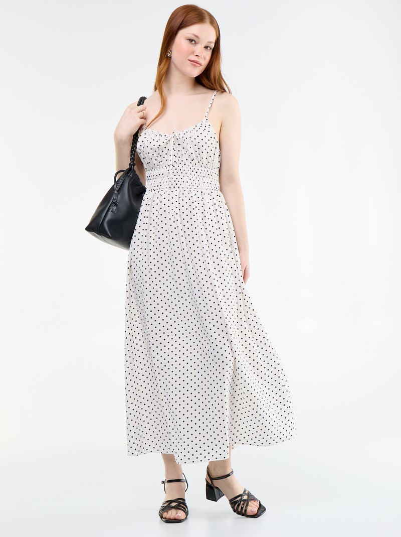 Vestido midi fruncido - Blanco