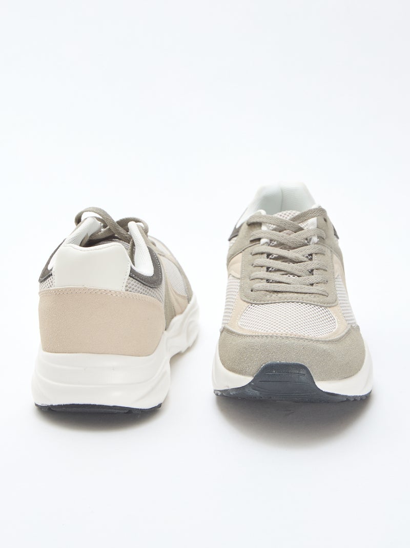 Zapatillas de running de malla tricolor, donde el rendimiento se une a un estilo audaz.